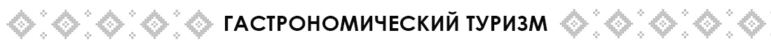 В Беларуси существует старинная традиция: каждого гостя первым делом нужно накормить. Здесь всегда готовят с душой и угощают как дома. Вас ждут ароматные драники, картофельная бабка и свежая сметана, клюквенный морс и медовые настойки, румяные колбаски и верашчака, рыбные и мясные деликатесы…